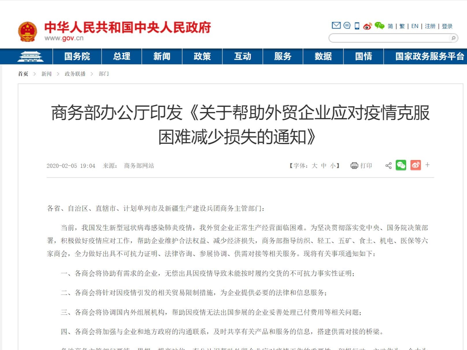 据商务部网站消息,为积极做好疫情应对工作,帮助企业维护合法权益、减少经济损失,商务部办公厅印发《关于帮助外贸企业应对疫情克服困难减少损失的通知》(下称《通知》),要求各商会